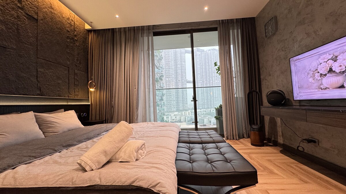Poczuj 5-gwiazdkowy luksus w tym stylowym szarym studio ze szklaną łazienką, akcentami z kamienia surowego i najwyższej jakości wykończeniem. Idealnie położony w samym sercu Ecopark, zaledwie 3 minuty od Jeziora Łabędziego i 30 minut od Starej Dzielnicy w Hanoi, z restauracjami, kawiarniami i sklepami tuż za progiem. Wyposażony w wentylator Dyson, głośnik Bluetooth i nowoczesne udogodnienia; a także dostęp do siłowni i basenu na 3. piętrze — idealny na pobyt na podwyższonym poziomie.