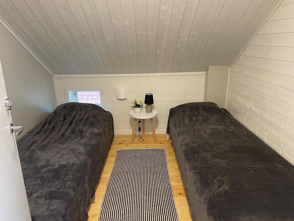 Tutaj mieszkasz ładnie w przestronnym domu w cichej okolicy w pobliżu Kanału Göta i w odległości spaceru od zamków Berga. Bliskość przyrody, jezior i pływania. Duży taras i taras z grillem. Parking dla dwóch samochodów i możliwość ładowania samochodu elektrycznego. Do centrum Linköping można łatwo dostać się autobusem (około 20 minut) lub samochodem (10-15 minut samochodem) Prawdziwe łóżka dla 6 osób, ale dodatkowe łóżka i sofa dla maksymalnie 9 osób. Wynajem tylko na co najmniej 3 noce