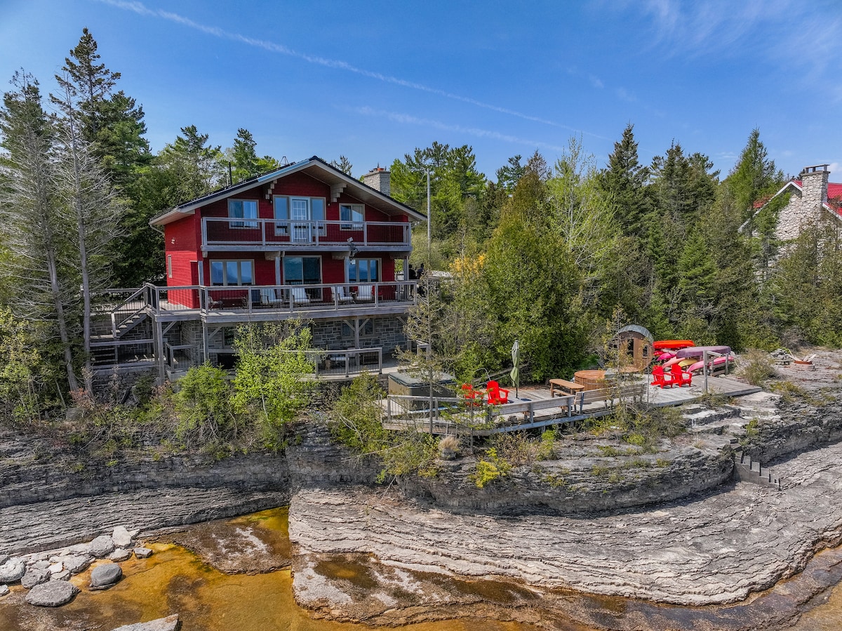 Waterfront cottage located halfway between Tobermory and Lion’s Head, on the shores of Lake Huron. Enjoy a spacious lakefront retreat with shallow, warm waters and spectacular sunsets. This cottage is the perfect gateway for hiking, kayaking, sightseeing, fireside evenings, stargazing, and year-round relaxation — including rejuvenating time in the outdoor sauna. Bruce Peninsula at its best, with major attractions within a 30-minute drive. The perfect base for adventure, water, and sunsets.