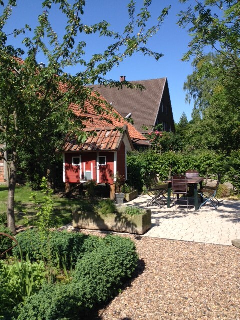 Unser gemütliches, massiv errichtetes Gästehaus liegt in einem ruhigen Wohngebiet in der Kurstadt Bad Nenndorf und bietet eine umfänglich ausgestattete Bleibe für unsere Gäste. Das Haus befindet sich als Nebengebäude auf unserem Grundstück und ist dort vollständig eigenständig nutzbar. Innenstadt und Kurpark sind in 15 Minuten fußläufig erreichbar. Eine große Feld- und Naturlandschaft befindet sich in der direkten Nachbarschaft. Wir freuen uns auf Euren/Ihren Besuch! Alina und Christoph