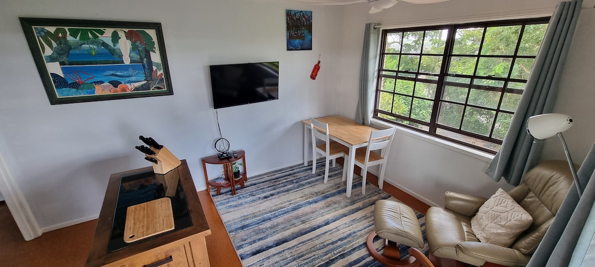 Twój apartament typu studio jest całkowicie niezależny i nie znajduje się pod tym samym dachem, co mój dom. Masz własne drzwi wejściowe i wyłączne korzystanie z części drewnianego pokładu. Przestrzeń można zamknąć za pomocą jednych drzwi wejściowych, a na zewnątrz zainstalowane są światła bezpieczeństwa. Miejsce znajduje się na zalesionym wzgórzu, ale tylko kilka minut samochodem od CBD Lismore. Obok znajduje się park, w którym mieszka wiele ptaków i czasami koala. Istnieje również parking poza ulicą dla przyczepy kempingowej i/lub kampera.