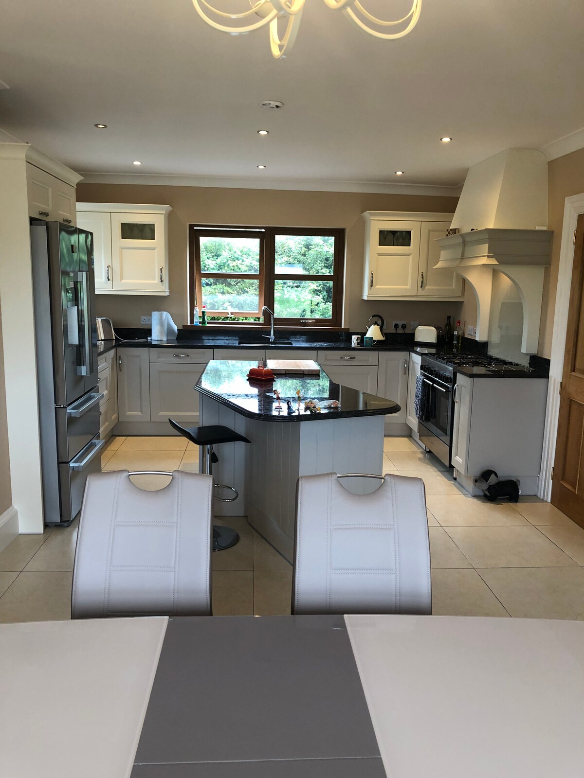 Ten dom jest urządzony nowoczesnymi, wygodnymi meblami. Minimalistyczny i schludny. Jest piękna, w pełni wyposażona kuchnia z lodówką w stylu amerykańskim, 5-palnikową kuchenką, podwójnym piekarnikiem i wygodną wyspą do przygotowywania posiłków. Jest tu nowoczesna główna łazienka z dużą wanną i prysznicem oraz inna łazienka z dużym prysznicem. Dodatkowa toaleta jest dostępna na dole. Pralnia jest dostępna w oddzielnym pomieszczeniu gospodarczym. Jasny, przestronny korytarz na dole i podest na górze z dobrym widokiem, który pomoże Ci się zrelaksować.