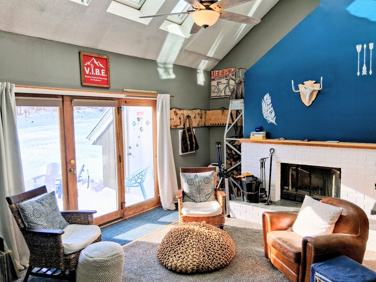 Ten mały domek z bali znajduje się w Campton Village. Jest czysty, bardzo jasny i wesoły dzięki oknu od podłogi do sufitu z widokiem na rzekę Mad. Obejmuje MAŁY aneks kuchenny (niezalecany dla osób poważnie podchodzących do gotowania nocnych uczt) oraz zamykane miejsce do przechowywania nart i sprzętu outdoorowego. Mała wanna z hydromasażem dla 2 osób. Wi-Fi. Ładowarka EV poziomu 2 na miejscu (obowiązują dodatkowe opłaty). 5 minut spacerem od browaru rzemieślniczego, sklepu spożywczego, zabytkowej sali gier i sklepu ze słodyczami.