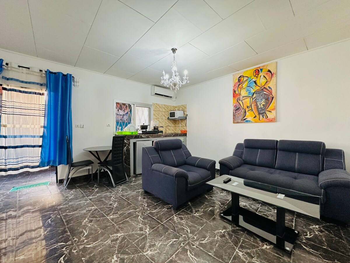Piękne umeblowane studio położone na skraju Bonamoussadi i Kotto, dzielnicy mieszkalnej. Znajduje się niecałą minutę spacerem od głównej drogi, większość restauracji, targowisk, banków i centrów handlowych znajduje się 5 minut jazdy od obiektu. Zakwaterowanie(klimatyzowany salon i sypialnia, 1 kuchnia, 1 prysznic) ma nieograniczone WiFi, Canal+(Bouquet Evasion), bezpieczny parking, nocny opiekun, całodobowa usługa konsjerża, która zaspokoi Twoje potrzeby w zakresie usług sprzątania.