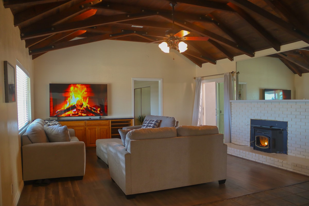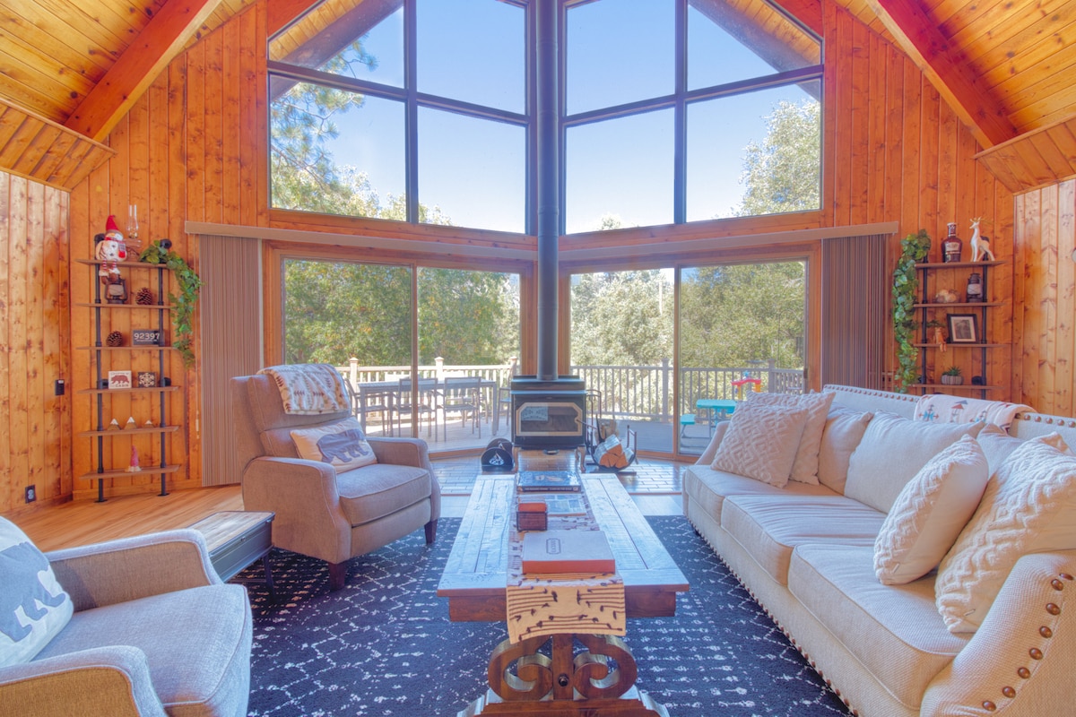 Odkryj naszą stylową i przytulną chatkę w górach w Wrightwood w Kalifornii, w której możesz przyjechać ze swoim zwierzakiem. Ciesz się nową 4-osobową wanną z hydromasażem pośród sosen. Tylko 1,5 godziny od LA, 2 godziny od San Diego i 10 minut od Mt High. Z 3bd, 2,5 ba, luksusową pościelą i ślepą uliczką przy Angeles National Forest, zrelaksuj się i na nowo poznaj naturę. Spacer do miasta, narty/snowboard lub wędrówka szlakiem Pacific Crest. Odpręż się przy ognisku na zewnątrz lub w pomieszczeniu i naładuj baterie. Plus *NOWA ładowarka do pojazdów elektrycznych.🔌
