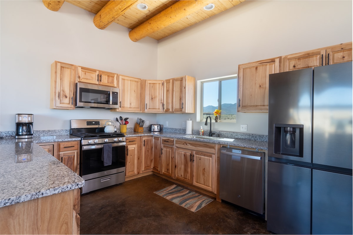 Zrelaksuj się w tym spokojnym, nowo wybudowanym, nowoczesnym miejscu wypoczynku, które jest blisko miasta. Idealne dla małych rodzin lub dwóch par. Ciesz się prawie 360 widokami, epickimi zachodami słońca, jadalnią na świeżym powietrzu i nowym jacuzzi. Zaledwie 4 mile od Taos. Oto najlepsze z obu światów: poczucie bycia z dala od wszystkiego, a jednocześnie zaledwie kilka minut od niesamowitych restauracji i sztuki. Jesteśmy również ponad 30 mil od Taos Ski Valley i Angel Fire Resort. Stwórz wspomnienia w Casa del Sol.