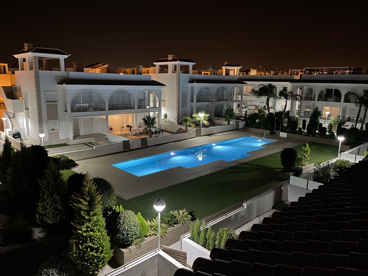 Villa ME is located in Rojales there is a mistake in the address on the Airbnb location , gate number is 16( not 7) and we cannot correct it at the moment , in the area of Alicante , a short car distance from the sea overlooking the beautiful lake view from the terrace. Villa is brand new, very spacious. Three bedrooms upstairs and one downstairs. nice pool , sub beds and terrace furniture to enjoy your holidays. Traveling with friends will still give you a lot of privacy. Revisit Apartments