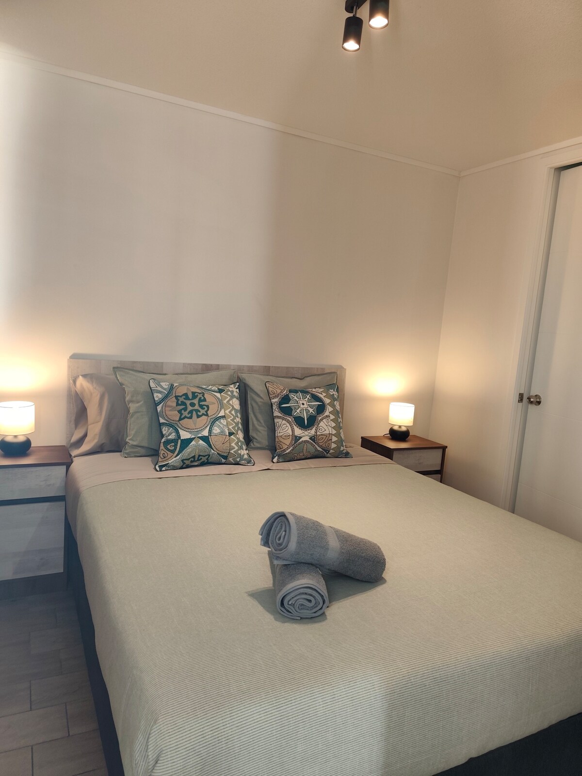Rozkoszuj się komfortowym apartamentem z 2 sypialniami zaledwie 10 minut od lotniska w Santiago. Idealne dla podróżnych i rodzin. Szybkie Wi-Fi, w pełni wyposażona kuchnia i samodzielne zameldowanie 24/7 z inteligentnym zamkiem. Bezpieczny budynek z parkingiem i świetnym dostępem do autostrad. Idealne na krótkie pobyty, podróże służbowe lub długie przerwy w podróży. Poczuj się jak w domu, mając wszystko w pobliżu.