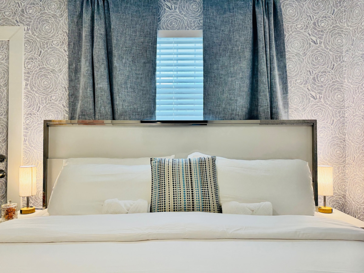 Ten położony w centrum i niedawno odnowiony dom z 2 sypialniami i 1 łazienką oferuje łóżko typu king size w jednej sypialni i łóżko typu queen size w drugiej sypialni. Idealne dla 4 osób. Otwarty układ zapewnia naturalne światło, pełnowymiarową kuchnię z nowymi urządzeniami ze stali nierdzewnej i salon z telewizorem HD Smart TV. Położony w spokojnej okolicy, zaledwie kilka minut od Coconut Grove i Coral Gables. W zaledwie 15-20 minut można dojechać do Brickell, Wynwood, Key Biscayne, South Beach i innych popularnych miejsc w Miami.