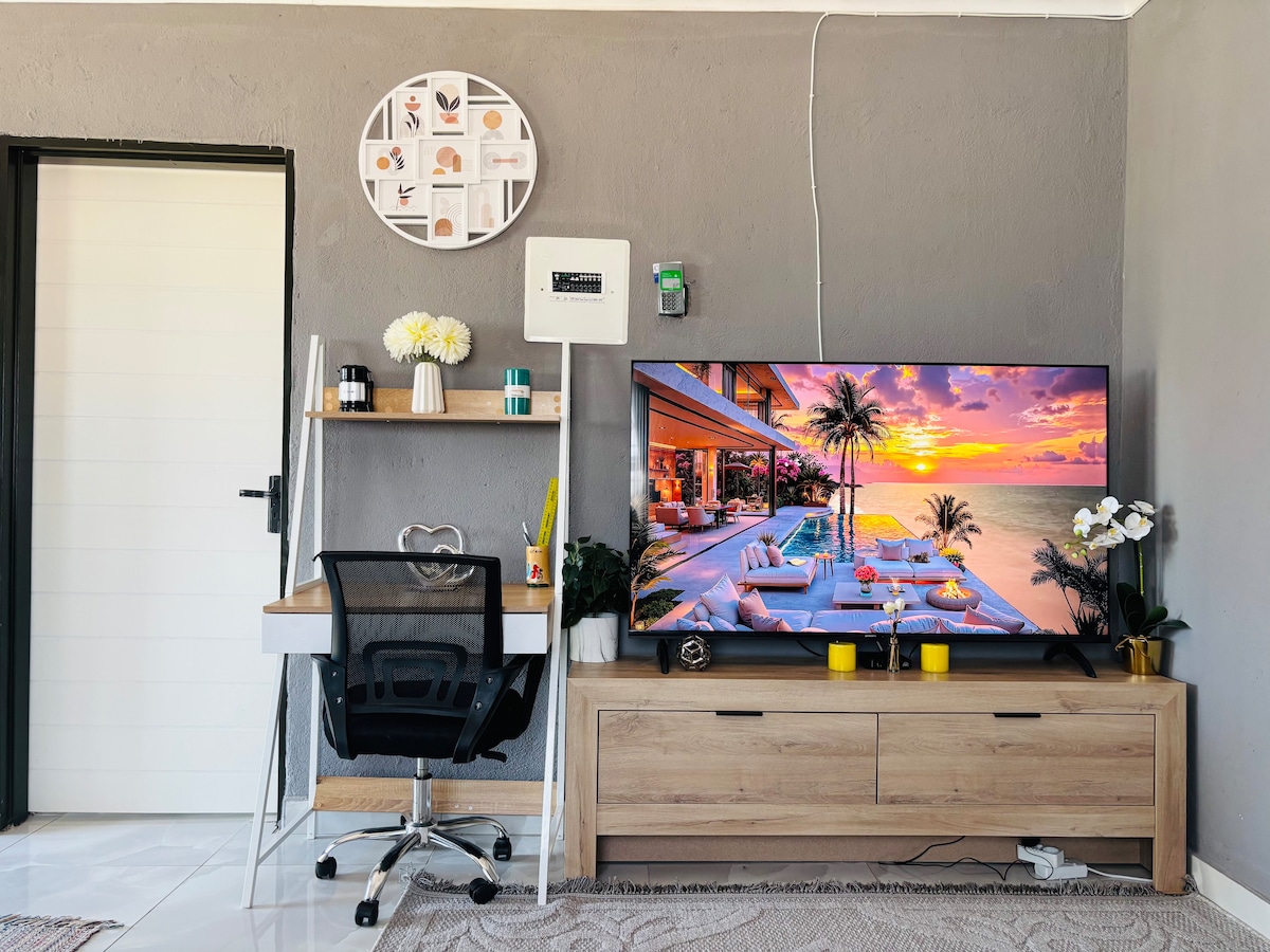 Modern one-bedroom apartment in a quiet, secure neighborhood just 4 km from the CBD. Ideal for business or leisure stays. Enjoy high-speed Wi-Fi, a Smart TV, and a comfortable workstation for remote work. The fully equipped kitchen includes a stove, oven, microwave, fridge, and cooking utensils. The bathroom features both a bathtub and shower. The apartment is serviced daily to ensure a clean and comfortable stay throughout your visit.