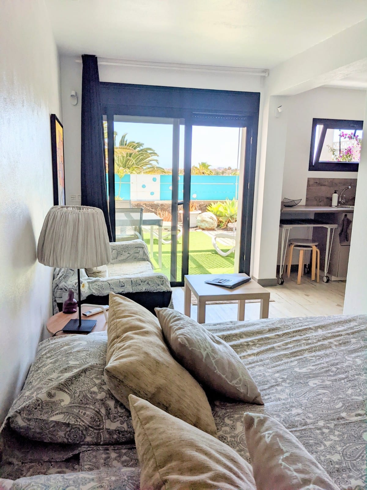 Zrelaksuj się w tym apartamencie przy plaży, położonym w centrum Corralejo. Mała oaza w pobliżu wszystkich usług (bary, restauracje, supermarkety) w cichej społeczności kilku apartamentów z ogrodem. Wyjątkowa lokalizacja, w której miłośnicy sportów wodnych mają kilka metrów dalej możliwość pływania, surfingu, skrzydeł, windsurfingu...