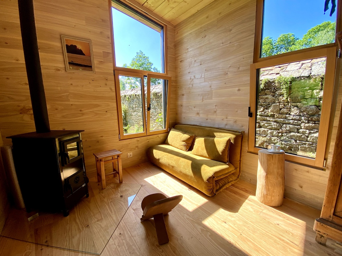 Mały domek na skraju lasu, zbudowany w 2024 roku z materiałów przyjaznych dla środowiska. Zapraszamy do spędzenia chwili spokoju na łonie natury. Możliwość prywatyzacji nordyckiej wanny z ogrzewaniem na drewno na łonie natury. Zachwyci Cię piękno okolicy w samym sercu urokliwej, malowniczej wioski Locquenole. Zapewniamy pościel i ręczniki.