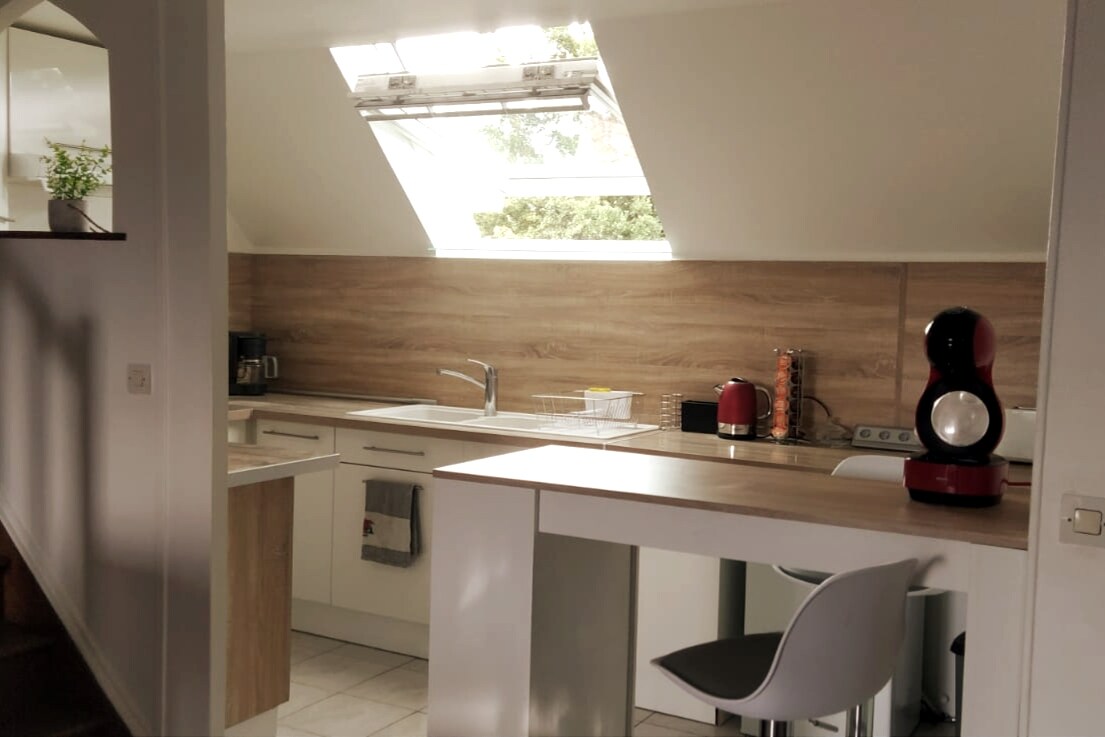 Ten piękny apartament dwupoziomowy z wspaniałym widokiem na katedrę znajduje się na drugim piętrze małego budynku, w idealnej lokalizacji nad brzegiem Eury, w historycznej dzielnicy Chartres, zaledwie kilka minut od słynnej katedry. Będziesz mieć wszystko, czego potrzebujesz, aby spędzić przyjemny pobyt!🌟 PARKING: 🅿️ Do apartamentu dołączone jest całkowicie bezpłatne prywatne miejsce parkingowe, które będzie dostępne podczas Twojego pobytu 🅿️