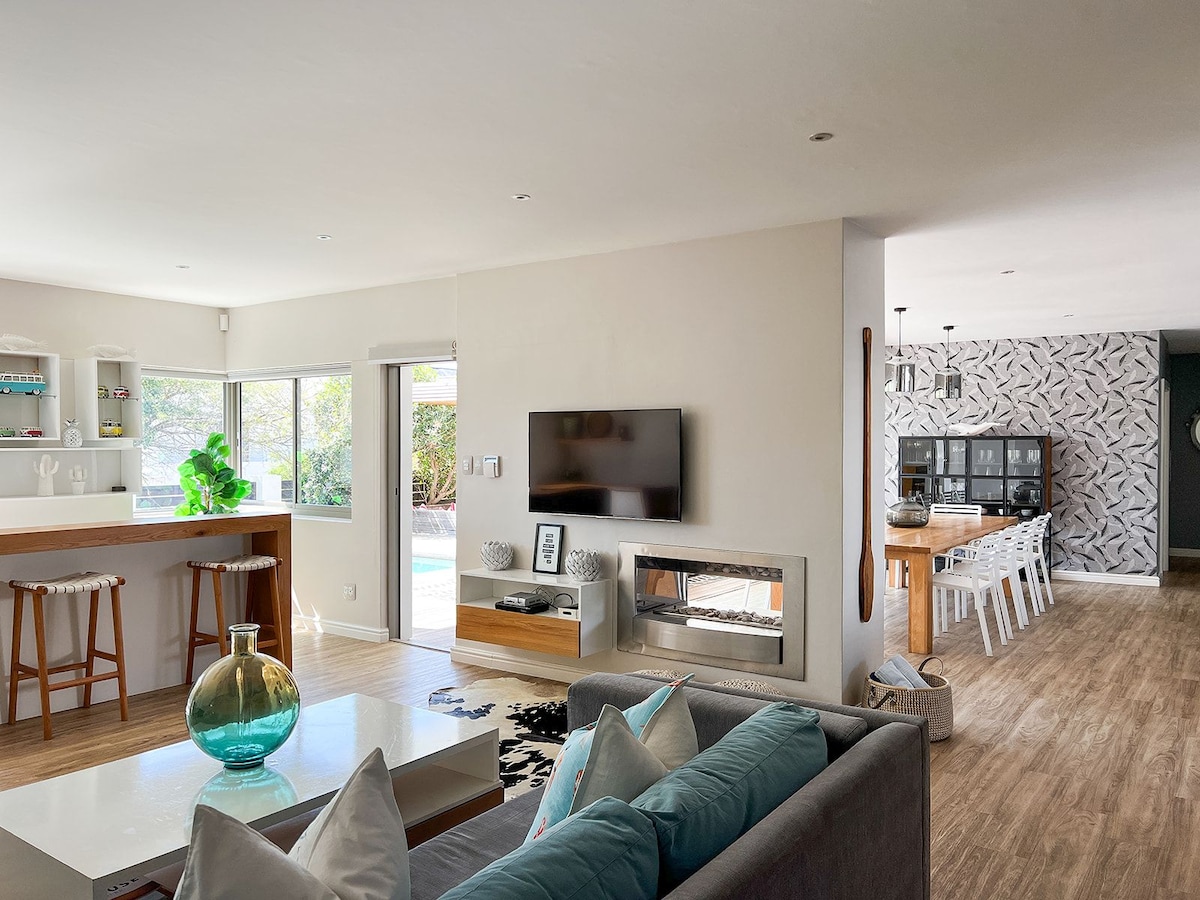 Escape everyday hustle and bustle in our relaxed beach house in Kini Bay village, perfect for large families or groups. The house offers a master bedroom with ensuite bathroom and walk-in closet, 3 additional double bedrooms, 2 bathrooms, an open plan, equipped kitchen and living area, separate lounge, outdoor swimming pool and braai area in a garden leading directly onto the beach.