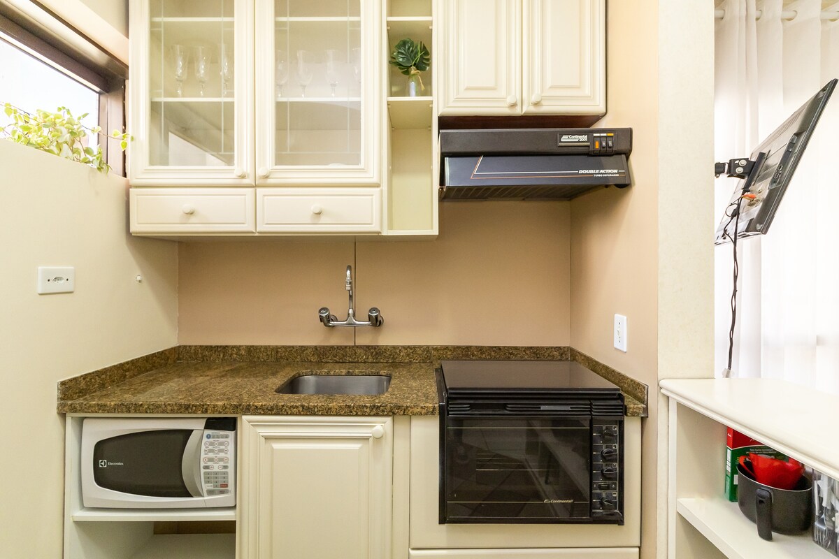 Zaledwie kilka minut od słynnej Alei Paulista i urokliwej ulicy Oscar Freire, łatwy dostęp do najlepszych restauracji, piekarni, sklepów i apteki. Dzięki dwóm stacjom metra w pobliżu Twój pobyt będzie spokojny i praktyczny. Mieszkanie jest dobrze urządzone i funkcjonalne, może pomieścić do czterech osób. Środowisko jest klimatyzowane, wyposażone w zasłony zaciemniające, Wi-Fi, telewizor, wyposażoną kuchnię i miejsce do pracy. W budynku znajduje się basen i miejsce parkingowe.