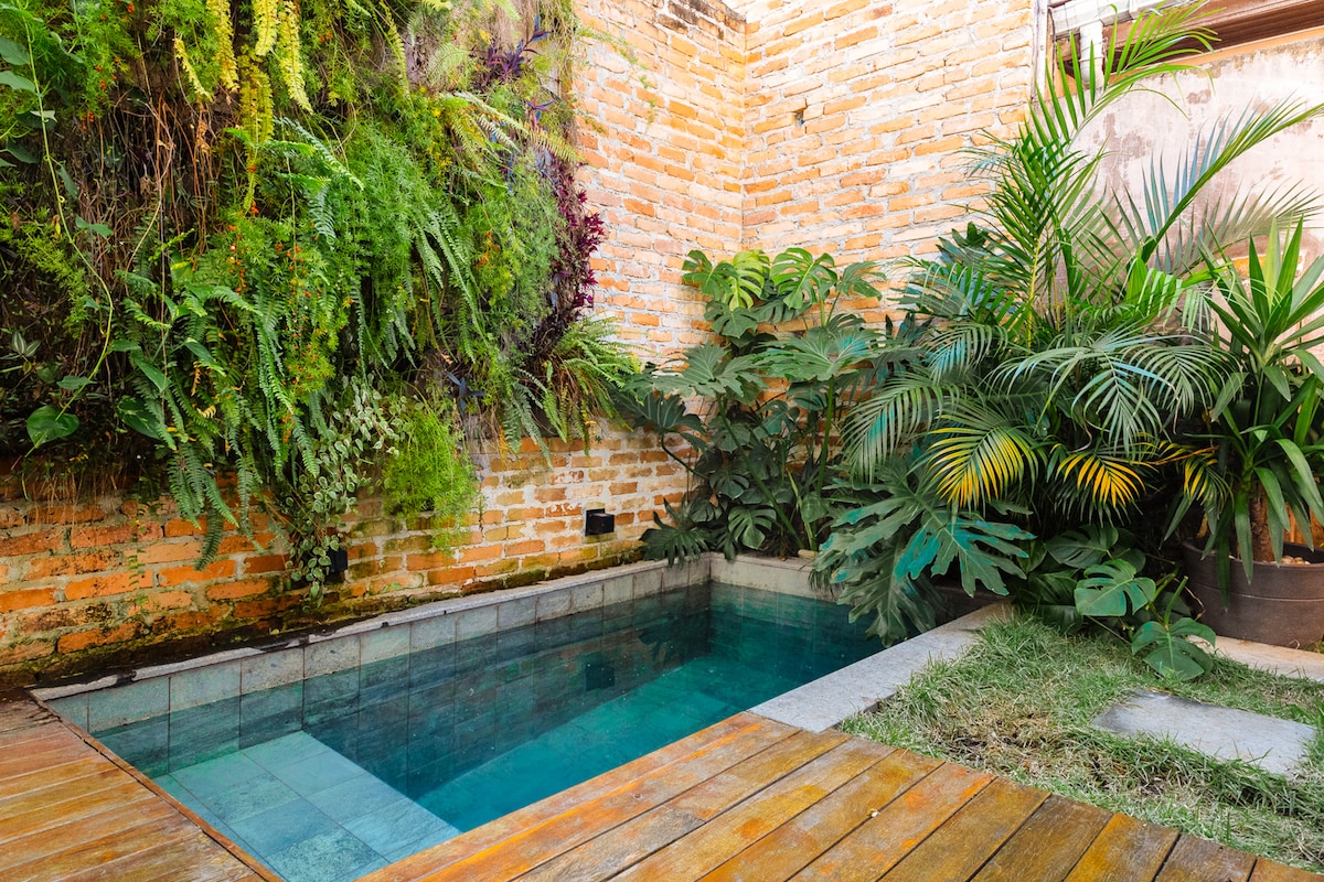 Baw się z całą rodziną w tym stylowym i bardzo zielonym miejscu. Dom z 2 sypialniami (1 apartament) i inną sypialnią z 3 wysokiej klasy materacami pojedynczymi Emma, cały dom w rustykalnym stylu industrialnym, basen, obszar dla smakoszy z grillem, stół z litego drewna dla 8 osób, obok stacji metra Praça da Árvore (600 m), pralnia i rynek dokładnie przed domem, spokojna okolica i wszystko w pobliżu. Każdy dom jest przygotowany do pracy zdalnej, a Wi-Fi jest dostępne w całym obiekcie.