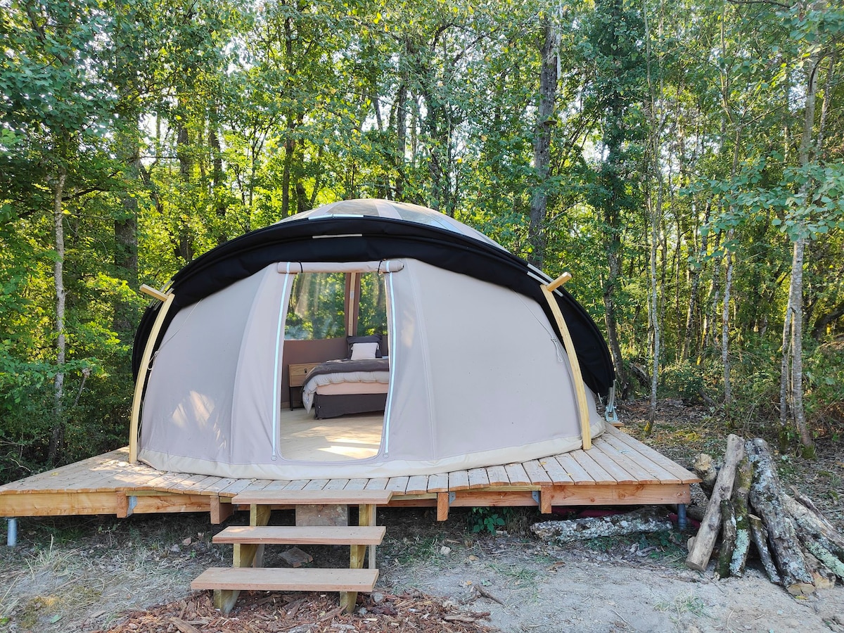 Przeżyj wyjątkowe doświadczenie. Obserwuj gwiazdy i słuchaj śpiewu nocnych ptaków. Nasza luksusowa kopuła geodezyjna Sérénité znajduje się w ekologicznym i naturalnym otoczeniu. Prywatna łazienka i toaleta sucha są zintegrowane z domem. Ekologiczne śniadanie domowe dostarczane do drzwi! *Możliwość prywatnego korzystania z naszej kąpieli nordyckiej ogrzewanej piecem na drewno do temperatury 38°. Cena: 15 euro za osobę, za godzinę czystego relaksu. Każda sesja kąpieli nordyckiej jest prywatna.