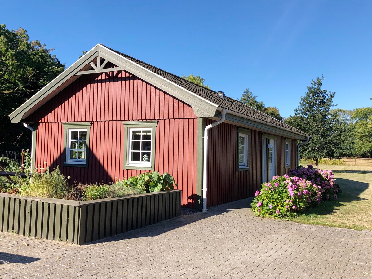 Oderwij się od codzienności w idylli: 73 m², maks. 6 osób, dostępność, 1 podwójne łóżko, 1 łóżko piętrowe, 1 rozkładana sofa, łazienka z prysznicem, kominek, darmowe Wi-Fi, telewizja z duńskimi kanałami programy, Netflix. Kuchenka mikrofalowa z piekarnikiem, ekspres do kawy, automat do napojów gazowanych, taras, ogród, siłownia, tenis stołowy, psy dozwolone (5 EUR/dzień), przyjazne dla rodzin, widok na alpaki i kury, ręczniki i pościel w cenie, około 2 km do plaży, port, restauracja i sklep, wiele miejsc w okolicy