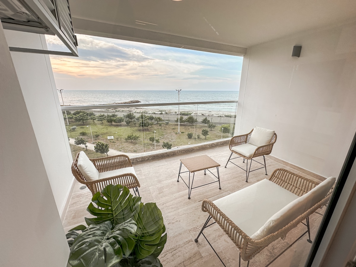 Obudź się przy dźwięku fal i podziwiaj zachody słońca z nowoczesnego i przytulnego apartamentu przy oceanie. Salon, sypialnia i balkon oferują wyjątkowy panoramiczny widok na ocean, który zachęca do relaksu i odpoczynku. Przestrzeń jest zaprojektowana w świeżym i eleganckim stylu, idealnym zarówno na romantyczne wypady, jak i rodzinne wakacje. Reserva Ya!