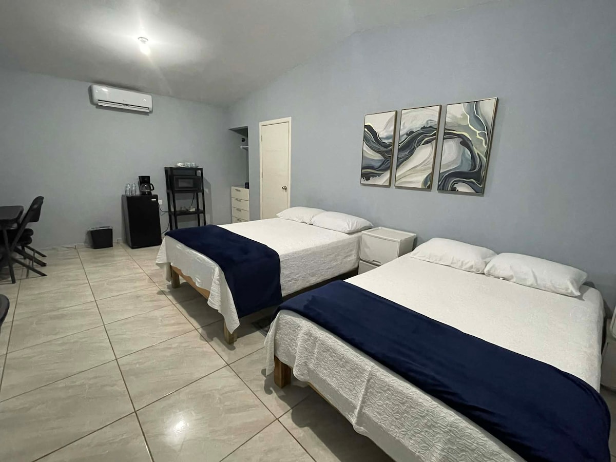 🍃 Relájate en este espacio tranquilo y en excelente ubicación. Dentro de sus ventajas se encuentra en área no inundable, a 5 minutos de Centros Comerciales, Restaurantes, Centros Médicos y a 10 minutos de los puentes internacionales. Cuenta con las siguientes comodidades: 🛋 Recibidor 🍽 Cocina con Refrigerador, microondas y estufa de gas. 🛁 Baño con agua caliente. 🛌 Una habitación con cama king size. ❄️/☀️ Aire acondicionado frío y calefacción. 🚙 Estacionamiento privado. 🪴 Jardín.