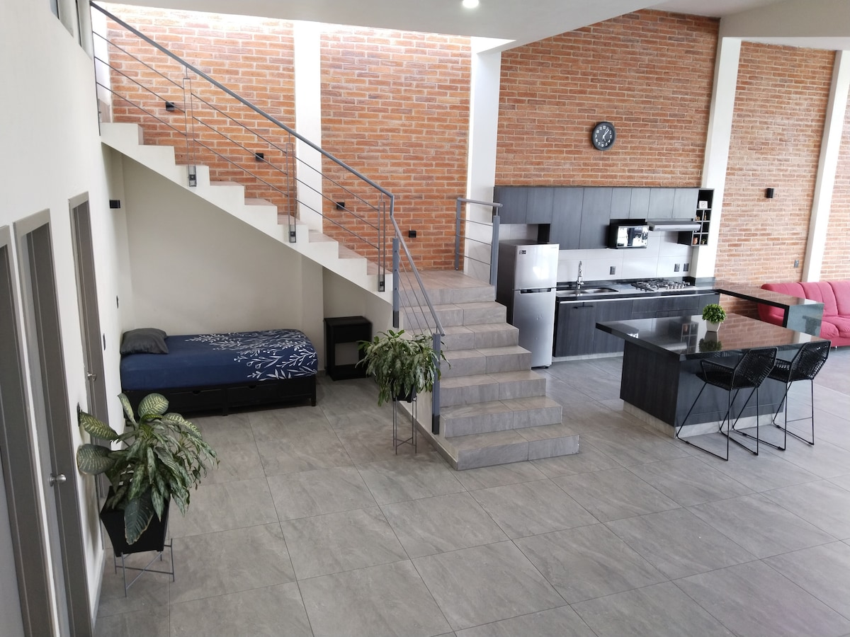 Ciesz się prostotą tego cichego miejsca na pobyt w pobliżu Międzynarodowego Portu Lotniczego Guadalajara (5 minut jazdy samochodem) Czystość i brak problemów z harmonogramem przyjmowania gości. Internet, Netflix, Prime Video Znajdują się tu dwie sypialnie, każda z własną łazienką, a w każdej z nich jest łóżko typu queen size i niezbędne udogodnienia do gotowania.