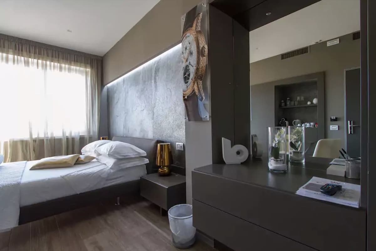 Ekskluzywny apartament typu Junior Suite w hotelu butikowym z oferowanymi zabiegami wellness, kilka kroków od jeziora Garda. Jego atrakcją jest prywatna wanna z hydromasażem na tarasie, która pozwala się zrelaksować pod gołym niebem. Elegancki wystrój, przytulne łóżko typu king-size, nowoczesna łazienka z przestronnym prysznicem oraz kącik z herbatą i kawą. Kameralny zakątek, w którym komfort, dobre samopoczucie i romantyzm łączą się, by zapewnić niezapomniany pobyt.
