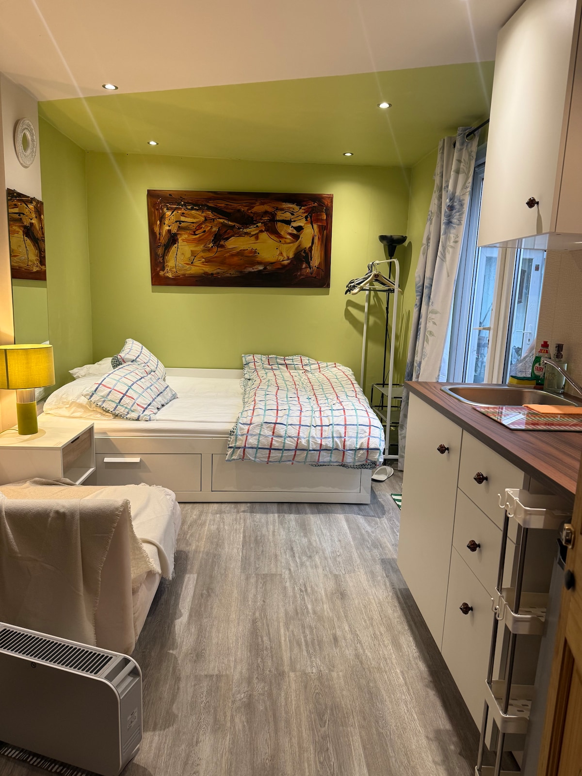 To wyjątkowe miejsce ma swój własny styl. Jest kompaktowy, ale przestronny i idealny dla par, pobytów służbowych, młodych profesjonalistów, a nawet entuzjastów fitnessu lub YouTuberów podróżujących do Londynu . Uzupełnij oddzielne wejście z zakodowanym zamkiem i kluczem (samodzielne zameldowanie/wymeldowanie, nie musisz mieć kontaktu z gospodarzem)OGROMNY telewizor z Netflixem. Obejmuje aneks kuchenny, kuchenkę mikrofalową, gorący pierścionek , talerze , miski , sztućce i wszystkie naczynia. Prysznic,toaleta i (king size) sofa. * Zakaz urządzania przyjęć