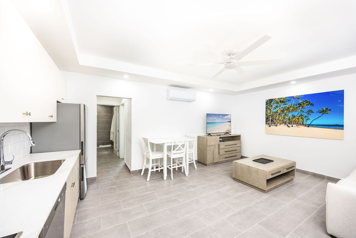 - Zatrzymaj się w jednym z naszych prywatnych nowo wybudowanych nowoczesnych apartamentów na Long Bay Beach. - Twój prywatny apartament zawiera w pełni wyposażoną kuchnię, niesamowity salon z sofą typu queen i telewizorem Smart TV, pokój z łóżkiem typu king-size, w pełni wyposażoną łazienkę i pralnię z pralką i suszarką, centralną klimatyzację i bezpłatne WI-FI. - W pełni zamknięta w bezpiecznej, luksusowej społeczności plażowej. - Specjalne zniżki promocyjne na lokalne wycieczki i zajęcia. - Ciesz się naszym dużym wspólnym basenem, hamakiem, grami w szachy i kukurydzianą oraz prysznicem przeciwdeszczowym na świeżym powietrzu.