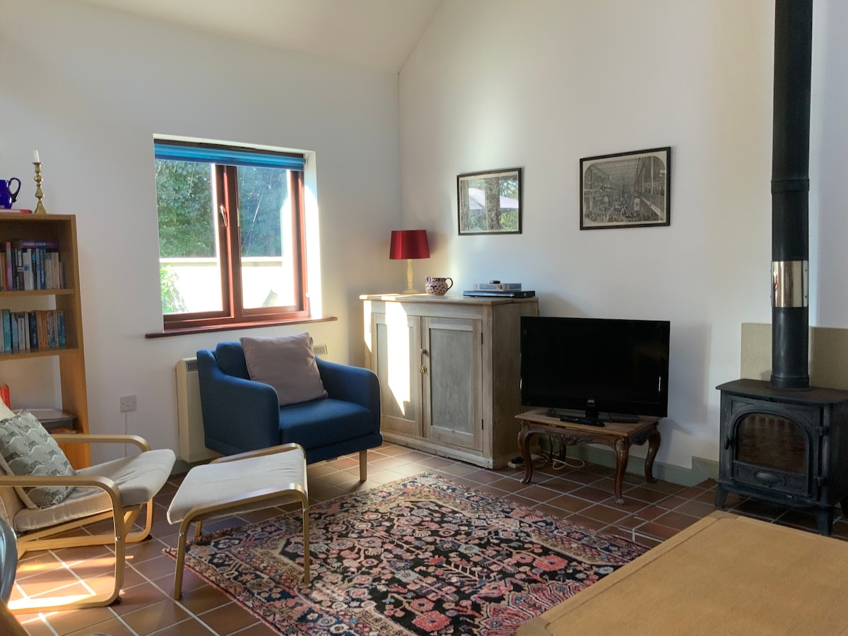 Bride Valley Studio is a light, spacious retreat for 2, a perfect place for a romantic getaway. The bedroom has a kingsize bed, the studio is 6x5m with kitchen and sofa. Please ask in advance if you’d like the travel cot and high chair or if you need the single bed putting up. Studio is 15m from our house, screened by trees, with own entrance, patio and parking. This is a quiet spot with fields on 3 sides, a mile from Burton Bradstock, ideal for walking, cycling, relaxing and Hive Beach