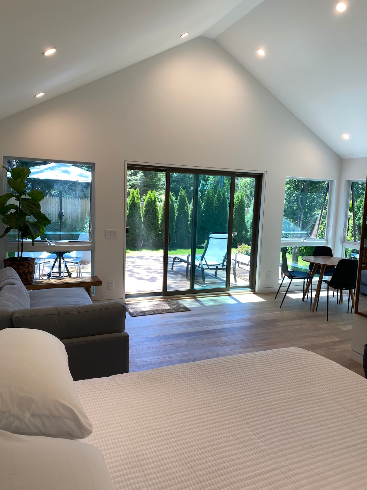 Zupełnie nowy, wypełniony światłem domek gościnny, z którego rozciąga się widok na las w samym sercu Greenwich w stanie Connecticut. Okna od podłogi do sufitu, promienne podłogi w łazience, materac queen Casper, miejsce parkingowe, Wi-Fi, telewizor, aneks kuchenny z pełną lodówką, ekspres do kawy Keurig, mikrofalówka, toster i płyta indukcyjna oraz wszelkie naczynia. Idealne miejsce na weekendowy wypad lub ciche miejsce do pracy.