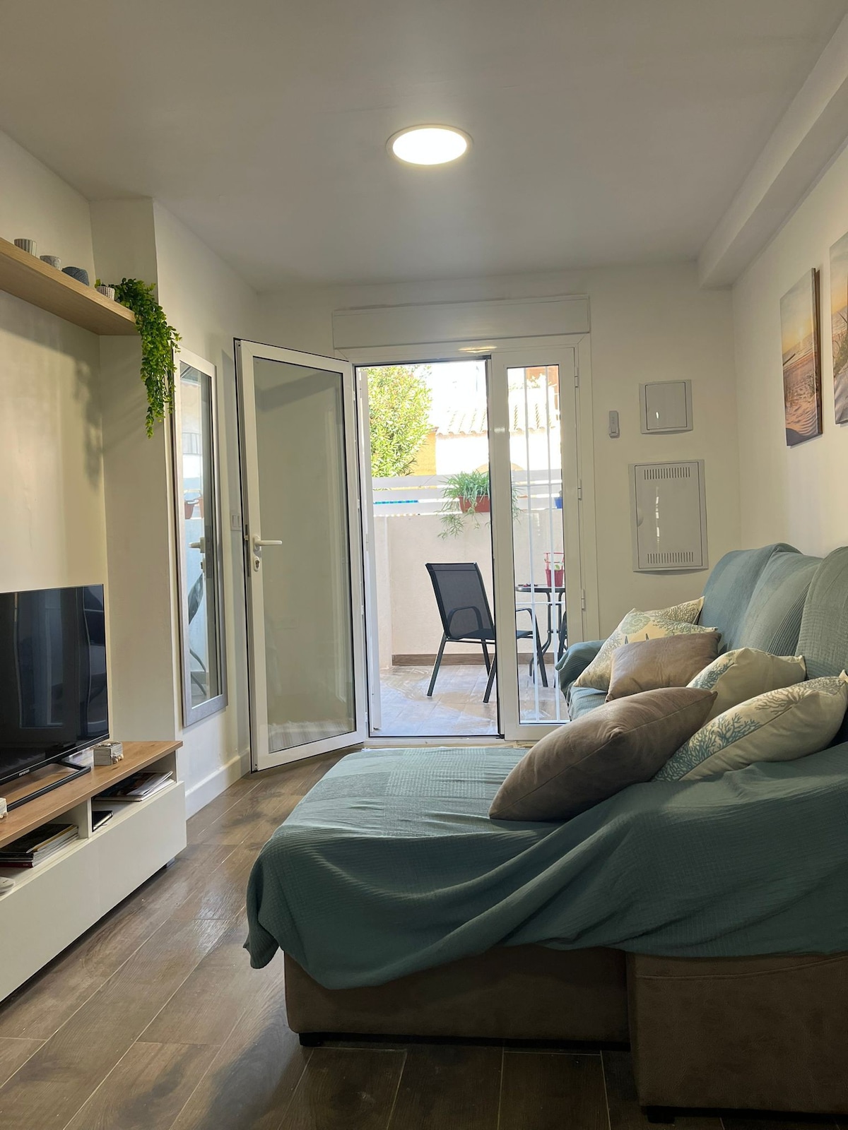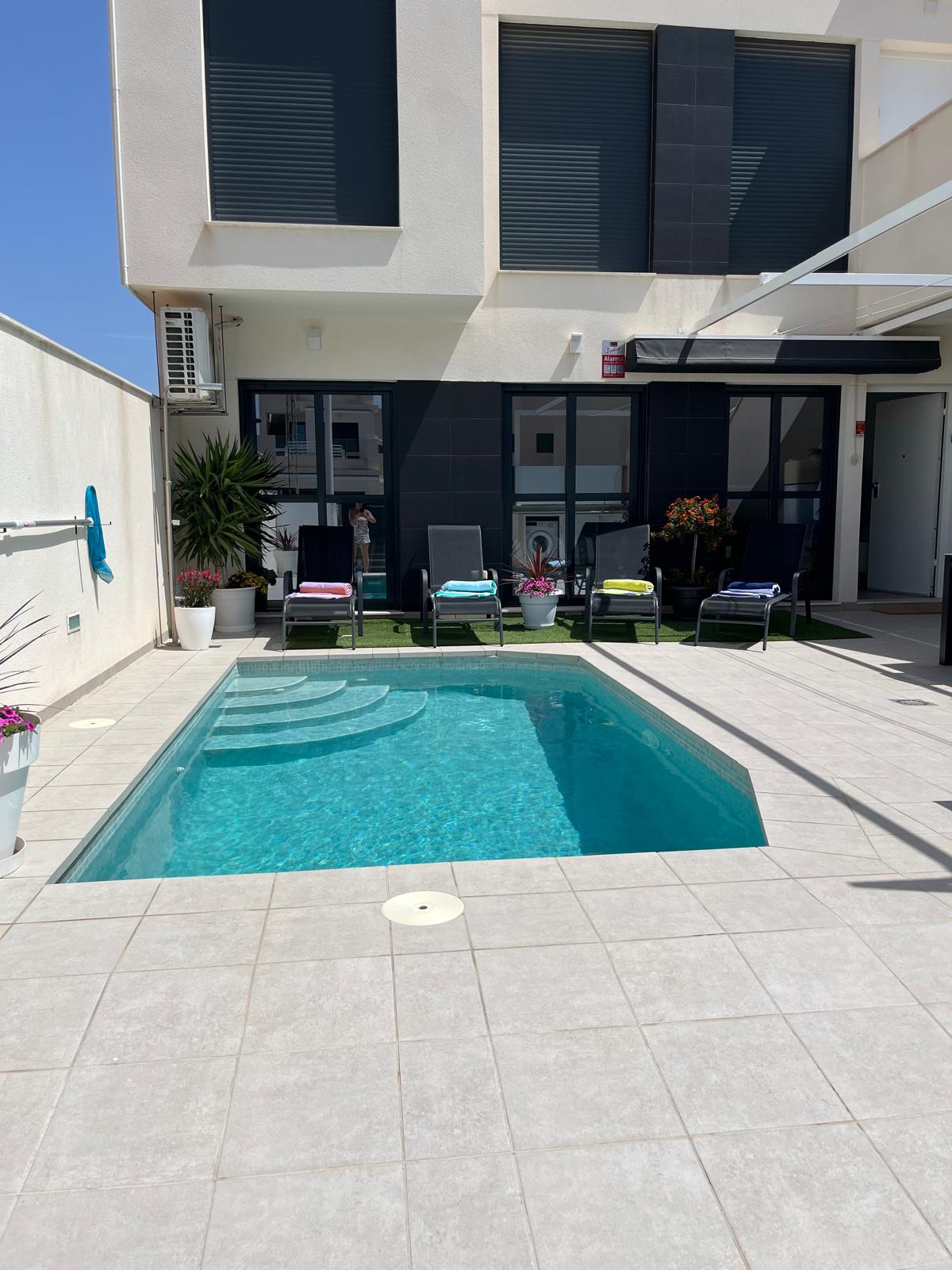 Dom z prywatnym tarasem i mieszkaniem na pierwszym piętrze z tarasem z markizą, aby cieszyć się słońcem przez cały dzień, ponieważ ma południową orientację. Klimatyzacja zimna/ciepła w salonie. W dwóch pokojach znajduje się wentylator sufitowy z orientacją północną. Bardzo spokojna i znajoma okolica. Sofa dla dwóch osób w salonie. W dolnej części znajduje się quartito z pralką i prysznicem, idealne na powrót z plaży. Do dyspozycji gości jest również parasolka.