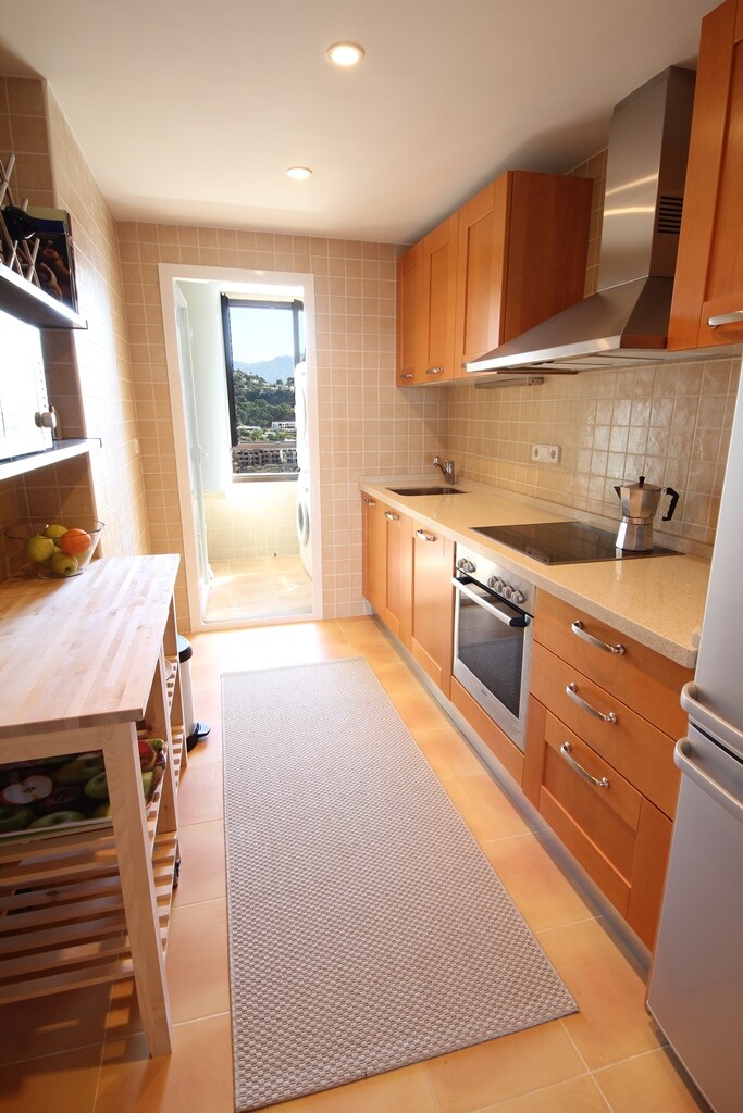 Nowoczesne i przytulne mieszkanie położone 5 minut drogi od Marbelli, apartament posiada 2 przytulne sypialnie i 2 łazienki. Dzięki nowym i nowoczesnym meblom, dużemu balkonowi z widokiem na ocean i pole golfowe, basenowi i garażowi, apartament sprawi, że poczujesz się jak w domu. Tuż przed kompleksem znajduje się pole golfowe Los Arqueros. Las Jacarandas to bardzo cicha dzielnica mieszkaniowa. Tylko 10 minut do Puerto Banus. W pobliżu znajdują się restauracje i sklepy. Prywatne osiedle