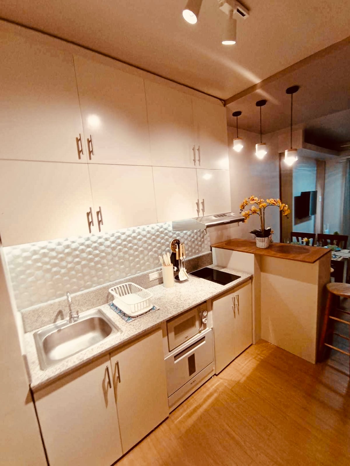 Enjoy a relaxing minimalist BRAND NEW studio unit just kilometres away from tourist destinations such as People’s Park, Picnic Grove, Sky Ranch and many more. Few steps away from Ayala Mall Serin, where you can access restaurants, fast food, coffee shops, groceries, etc. Vicar Home is a BRAND NEW modern studio condominium unit with a combination of greenery and cosy lighting perfectly for a serene, warm and inviting feel. The comforts of a vacation lifestyle.