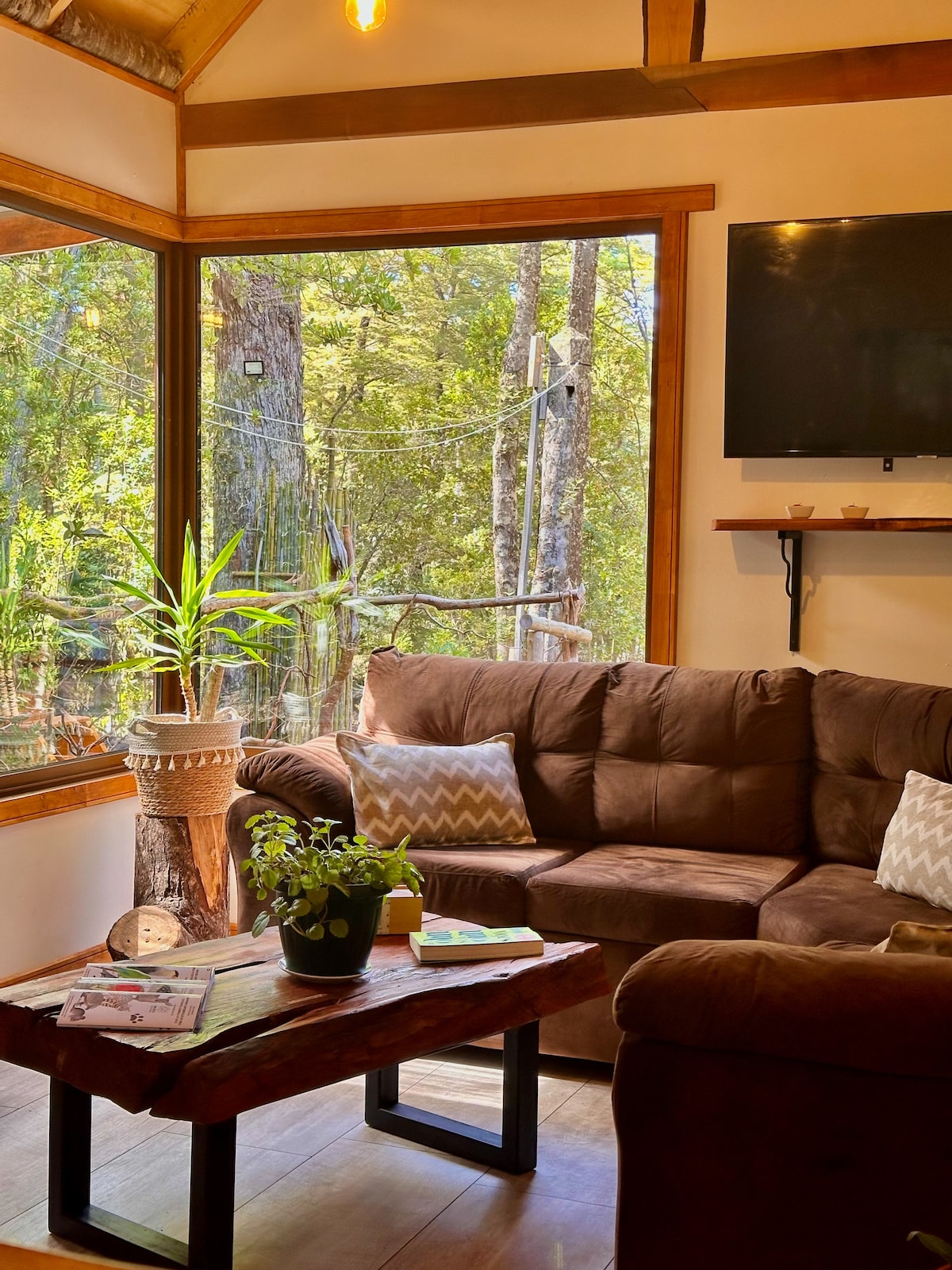 A 45 minutos o 32 km de Pucón, cabaña rural inserta en el bosque, pensada para una experiencia de desconexión y vida simple. Silencio, canto de aves, árboles nativos, sol y lluvia cordillerana, con excelente WiFi. Funcionamos con energía renovable y consumo consciente, sin lujos urbanos. La calefacción es a leña, con el ritmo tradicional del sur. Ideal para descansar, reconectar con la naturaleza y habitar el bosque con respeto; no recomendable para quienes buscan comodidades de ciudad.