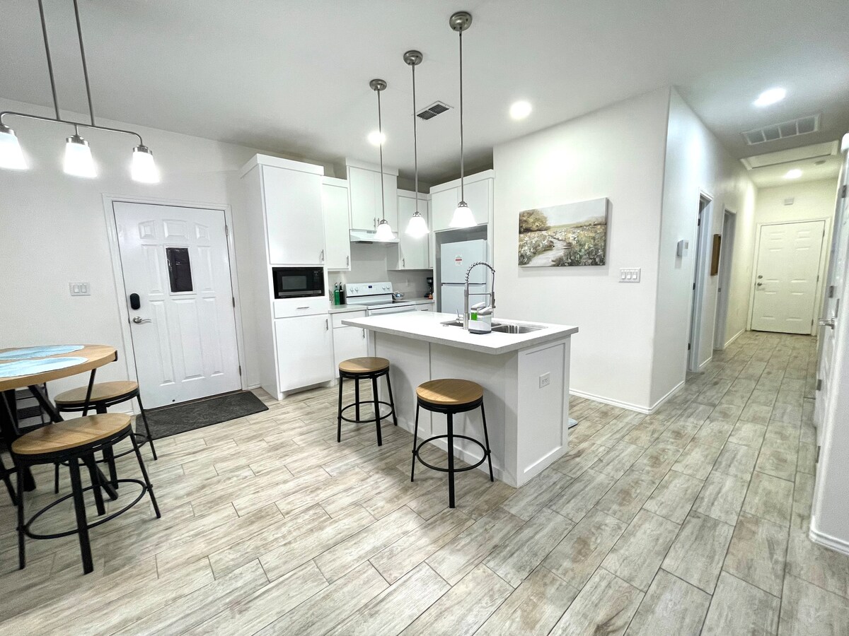 Zanurz się w uroku tego w pełni odnowionego apartamentu typu Duplex, odzyskanych starych drewnianych podłóg, kuchni, lodówki, kuchenki, kuchenki mikrofalowej, 2 dużych telewizorów Smart TV, salonu, łóżka typu queen, nowoczesnej łazienki z umywalką z wapiennej toalety, prywatnego patio i podwórka, dojrzałych drzew mesquite, stołu jadalnego, biurka, bloku od Business 77, restauracji, sklepów, parków, szlaków pieszych i rowerowych oraz centrum ptaków Ramsey Park, w pobliżu Valley Baptist Hospital i UTRGV Harlingen Campus.