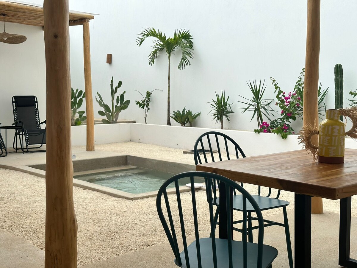 El Pasito oferuje 5 kabin. Wszystkie zostały przemyślane i zaprojektowane tak, aby zapewnić naszym gościom komfort i prywatność. Chcieliśmy, aby to miejsce było pełne pozytywnych wibracji, aby od razu można było poczuć się w nim dobrze... W sercu ogrodzonej posesji zamykanej bramą elektryczną, każda kabina posiada prywatny parking, taras, w pełni wyposażoną kuchnię i mały prywatny basen. Gwarantujemy prywatność podczas Twojego pobytu.