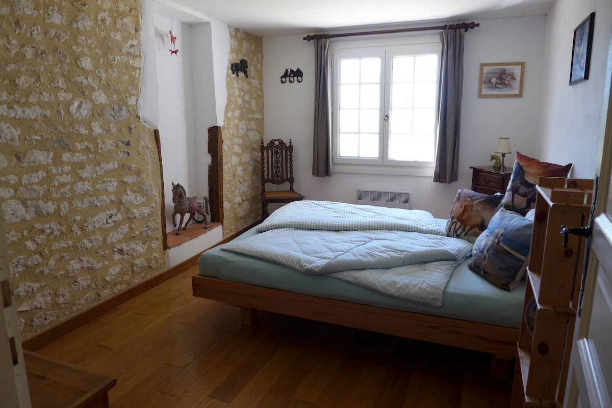 Stare odnowione gospodarstwo o powierzchni 300 m2, na wzgórzach wioski Dieulivol, 2 minuty jazdy samochodem od buddystów z Pruniers. Dom znajduje się na działce o powierzchni 1 ha z ładnym ogrodem i winnicą, z widokiem na dolinę Dropt i na bastydę Monségur. Piękny, komfortowy pokój w całkowitym spokoju, z widokiem na dolinę Dropt. Sypialnia ma własną łazienkę i prywatną toaletę, a pościel i ręczniki są zapewnione