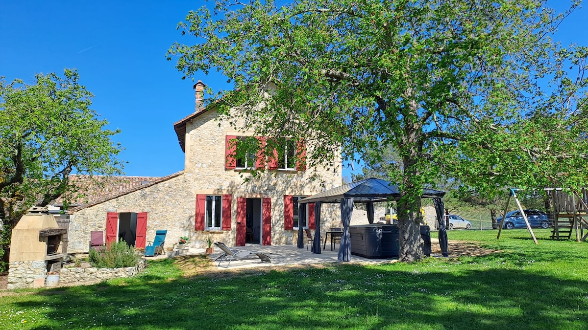 Odnowiona kamienna stodoła z 2 sąsiadującymi domkami, oddzielonymi dużym ogrodem wewnętrznym. Oferuję przytulny domek, idealny na wypoczynek na wsi w gospodarstwie. Spokojny zadaszony taras z prywatnym jacuzzi w każdym domu (niedozwolone dla małych dzieci) Idealne dla 4 osób lub pary Piękny widok, bardzo spokojna lokalizacja. Możliwość uprawiania wielu aktywności: kajakarstwo, rejsy łódkami po Dordogne, zwiedzanie zamków, wiosek, jaskiń, muzeów, restauracji, targów... itp.