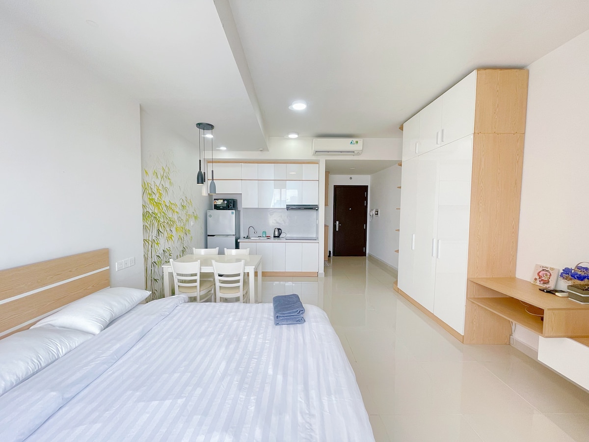 Our studio provides a comfortable and convenient home base for your stay. It is located just a few steps away from popular tourist attractions like Ben Thanh Market, Bui Vien area, Nguyen Hue walking street, and many others. ✯ Central location ✯ 5 mins to MRT ✯ Elevator access ✯ Self-check-in / check-out. Late-night check-in support ✯ Spacious front-facing balcony ✯ 40m2 - Queen-sized bed - Smart TV - private bathroom ✯ Smart TV with Netflix ✯ AC, microwave, a kitchenette & fridge available