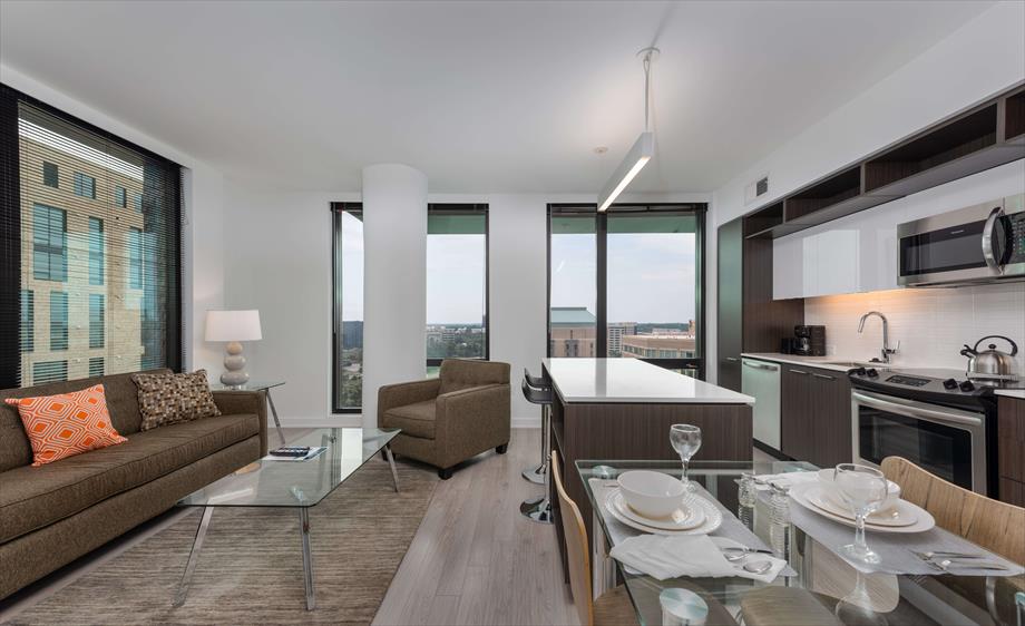 Find the best of city conveniences and suburban comfort here at Reston Town Center. Set above the high-end shops and restaurants of this outdoor mall, these apartments are ideal for any trip to the D.C. area. What makes them stand out? - Fabulous location at Reston Town Center within walking distance of Reston’s top things to do - Spacious floor plans with huge windows and hardwood floors - Gourmet kitchens with stainless steel appliances - Luxurious hotel-like amenities