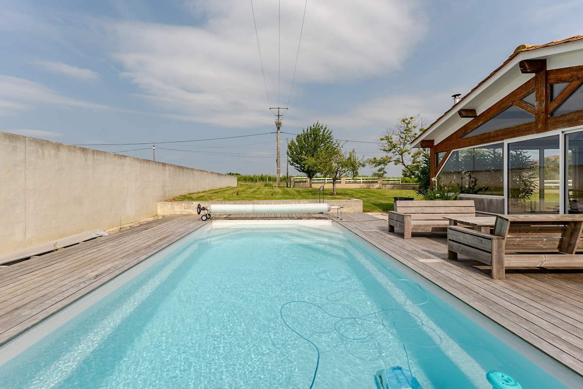 Szukasz miejsca na wypoczynek i autentyczności? Ten stary ratusz i szkoła w Entre-deux-Mers zabierze Cię w podróż w czasie. W sercu bujnej roślinności i w cieniu majestatycznych drzew, z których roztacza się imponujący widok na dolinę i winnice. Pod dziedzińcem czeka na Ciebie duże jacuzzi, a także ogród z atmosferą tawerny, idealny na wieczory przy grillu. Aby naprawdę wrócić do korzeni, z dala od wszystkiego, czeka na Ciebie kojąca atrakcja dla ciała i umysłu.