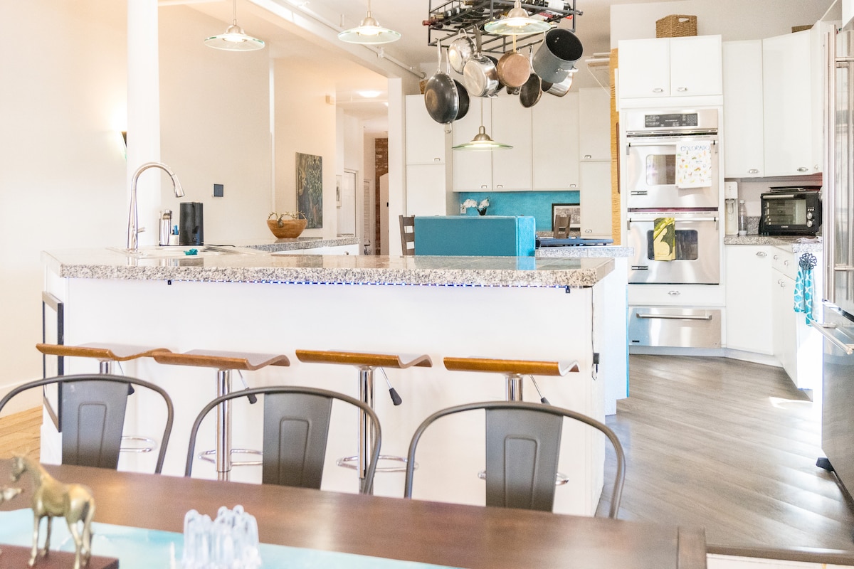 Enjoy spring & summer in sunny Colorado on our spacious rooftop deck, complete with a gas grill and a relaxing hanging egg chair! The Space Enjoy your stay in our lofted, modern carriage house in downtown Loveland, newly built in spring 2024. Designed with hospitality in mind, this upscale 2-bedroom apartment is filled with natural light and sleek, contemporary finishes. The unit will be decorated for the holidays from after Thanksgiving until end of December!