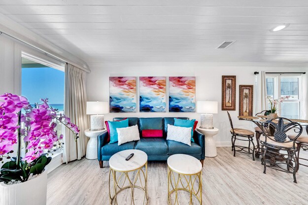 Stunning 7th floor unit BEACH FRONT, tastefully renovated, new furniture and appliances, with large balcony to enjoy the BEST SUNSET IN THE COUNTRY! Perfect LOCATION on the “quite end” of PCB, combining a relaxed environment, while 5-10 min drive from all the main city activities, including shopping, restaurants, and family entertainment. Regency Towers charges a one-time $40 fee per reservation for one parking permit and pool wristbands. Must be at least 21 years of age to rent.
