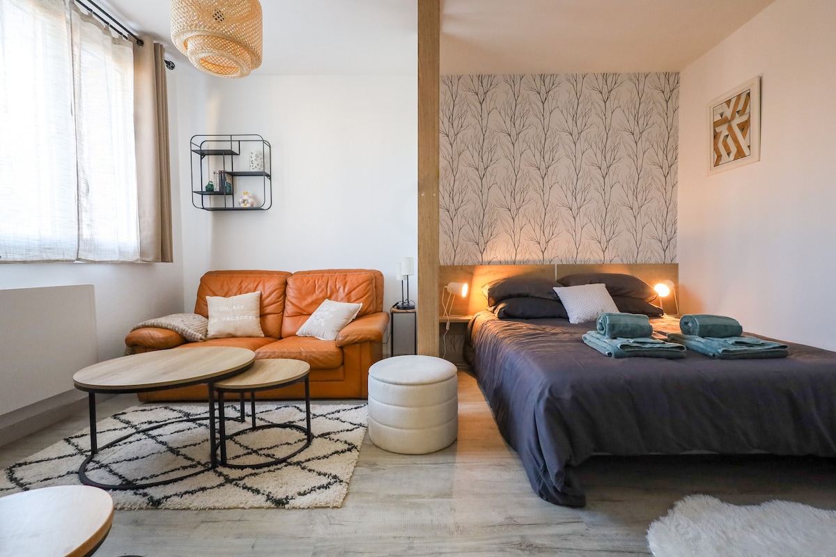 Przytulny, niezależny apartament typu studio, na naszej działce, 39 m2 z ogrodem, 5 minut od CNPE i w pobliżu rzeki Ain, 5 minut od równiny Ain, 20 km do lotniska, 20 km do parku OL, 35 km do Lyonu. w Saint Maurice de Gourdans i jego przyjemnym otoczeniu: miasteczko z sklepami, Piekarnia, sklep spożywczy, sklep tytoniowy, sklep mięsny, bar, naleśnikarnia (200 m od apartamentu), pizzeria. ** Cena dostosowana po pierwszym pobycie **