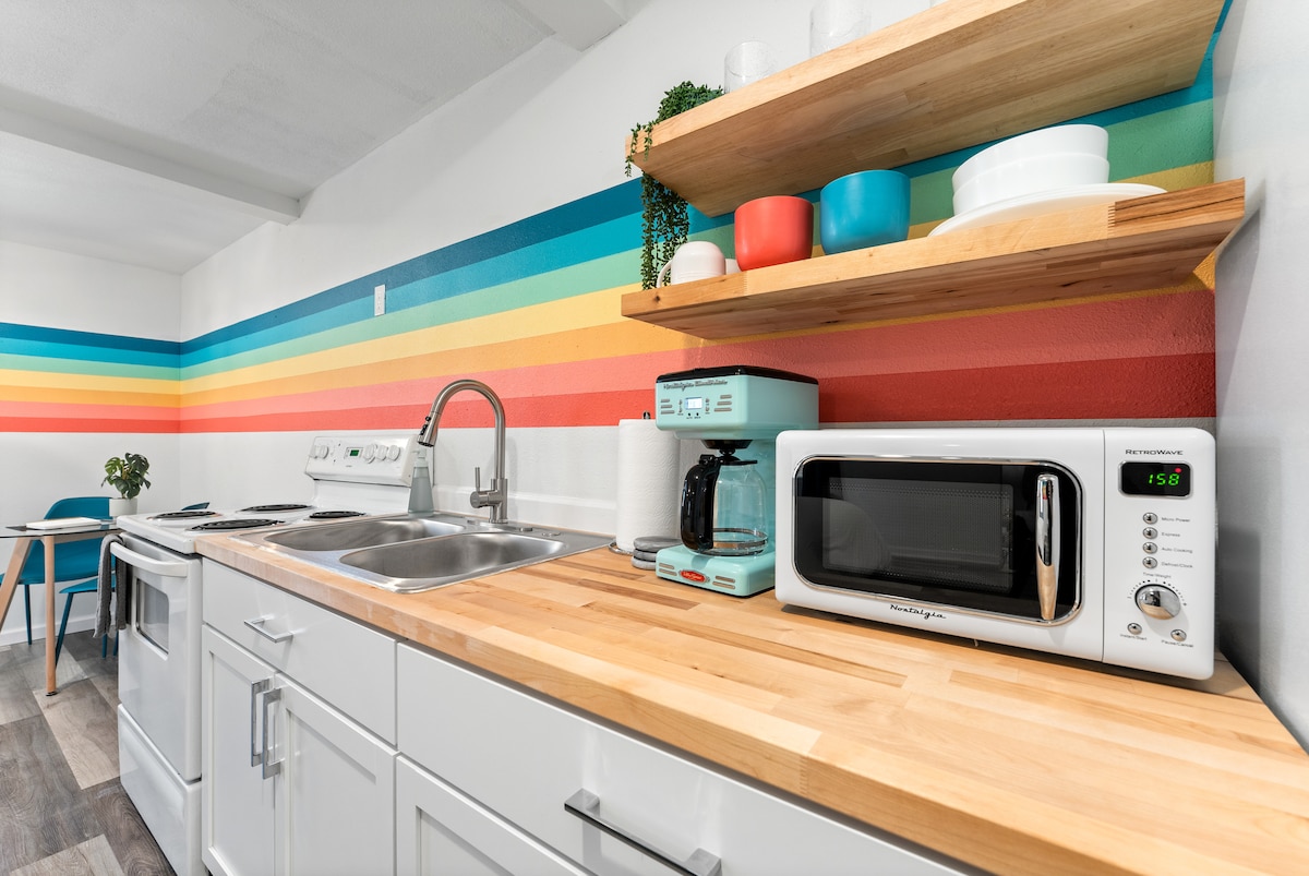 Pensjonat ModPod został całkowicie odnowiony i przemyślany, aby zapewnić niezapomniane wrażenia z pobytu w Lubbock Airbnb! Zastosowanie jasnych kolorów, wzorów inspirowanych stylem retro i tropikalnej zieleni tchnie życie w przestrzeń, tworząc zabawną, elegancką i relaksującą atmosferę. Poczuj się jak w domu dzięki udogodnieniom, takim jak wysokiej jakości kawa, Wi-Fi i telewizor z Roku (Netflix, Amazon Prime). Idealny mały wypad dla jednej lub dwóch osób, aby wygodnie cieszyć się!