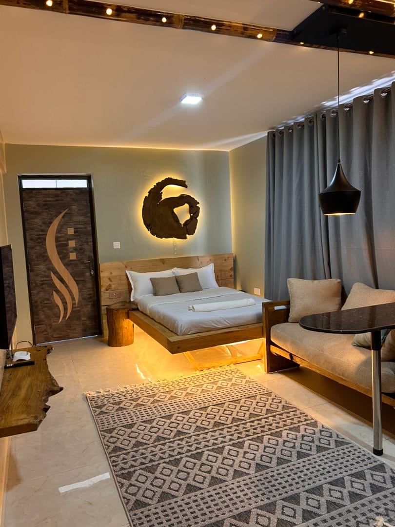 A cozy, stylish tiny studio just minutes from Kampala’s city centre....... Cleverly designed for comfort, with thoughtful details and a homely feel throughout. Surrounded by orchids and greenery, you’ll enjoy a private patio for peaceful outdoor moments. Don’t miss the rooftop terrace; perfect for soaking in stunning 360° views of the city!