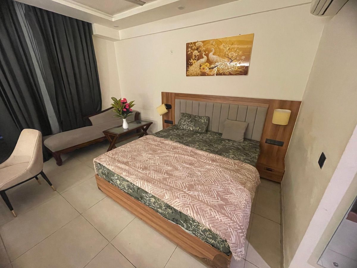 Experience comfort in our spacious 2-bedroom apartment in a secure gated society. Enjoy cozy memory foam mattresses, a fully automatic washing machine, a stylish living area with a 5-seater sofa, and a smart TV. A personal cook is available for delicious, homemade hygienic meals. Perfect for families or business travelers seeking convenience and a homely stay.