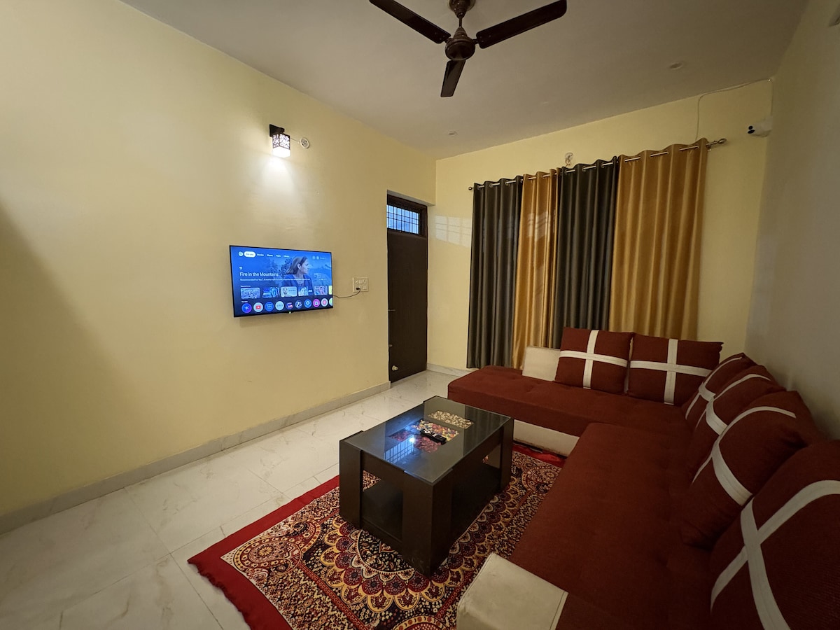 Witamy w naszym przytulnym penthousie na drugim piętrze, z prywatnym wejściem i uroczym patio. Dom oferuje 2 klimatyzowane sypialnie, każda z łóżkiem typu king, 2 łazienki (jedna dołączona, jedna w salonie), kuchnię z filtrem wody RO i małą wspólną przestrzeń z lodówką. Do dyspozycji gości jest również szybkie Wi-Fi Airtel i biurko. Uwaga: w przypadku rezerwacji dla 1–2 osób 1 sypialnia i łazienka pozostaną zamknięte, aby zapewnić bardziej indywidualne wrażenia.