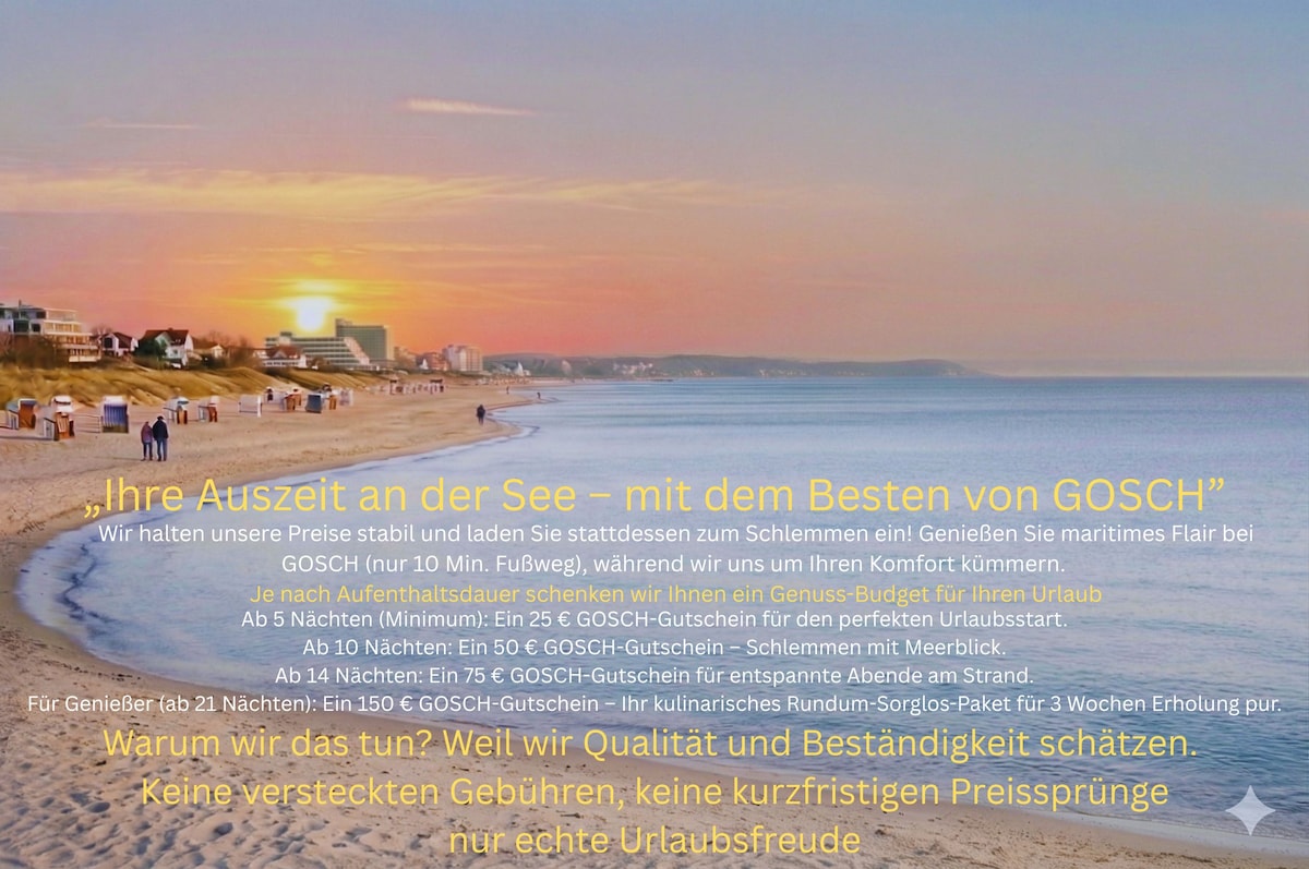 „Sonneneck” – przytulny drewniany dom na wsi, część zespołu z wspólną sauną, w odległości spaceru od morza. Duże okna otwierają widok na ogród, przyrodę i spokój. Na około 60 m², do 4 osób (+2 dodatkowe łóżka) może czuć się komfortowo. Strefa relaksu dla dzieci na galerii, prywatna sauna, możliwość rezerwacji zabiegów wellness, plaża przyjazna dzieciom w odległości 10 minut spacerem. Pakiety pralnicze można zarezerwować za dodatkową opłatą, wczesne zameldowanie i późne wymeldowanie na życzenie.