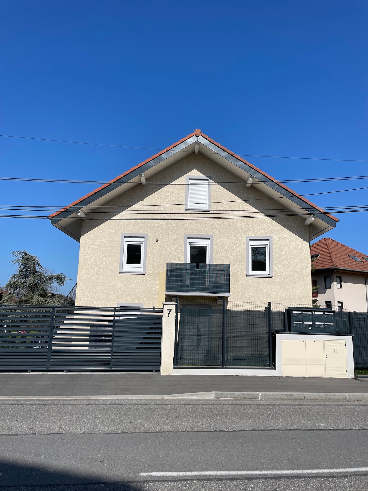 Przytulne, w pełni wyposażone 2 pokoje o powierzchni 40 m² na parterze bardzo cichej rezydencji, 10 minut spacerem od centrum miasta i szpitala. Miejsce dla maksymalnie 4 osób. Idealne dla par. Bezpłatny parking na ulicy, ale także zamykana garaż w piwnicy rezydencji bez dodatkowych opłat Piekarnia i sklep spożywczy w odległości 200 metrów Termy oddalone o 15 minut spacerem W zaledwie 10 minut można dojechać samochodem do kąpieliska nad jeziorem. Ośrodki narciarskie Portes du Soleil oddalone są o pół godziny jazdy.